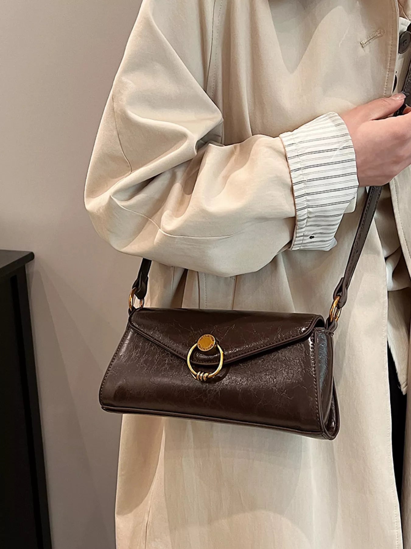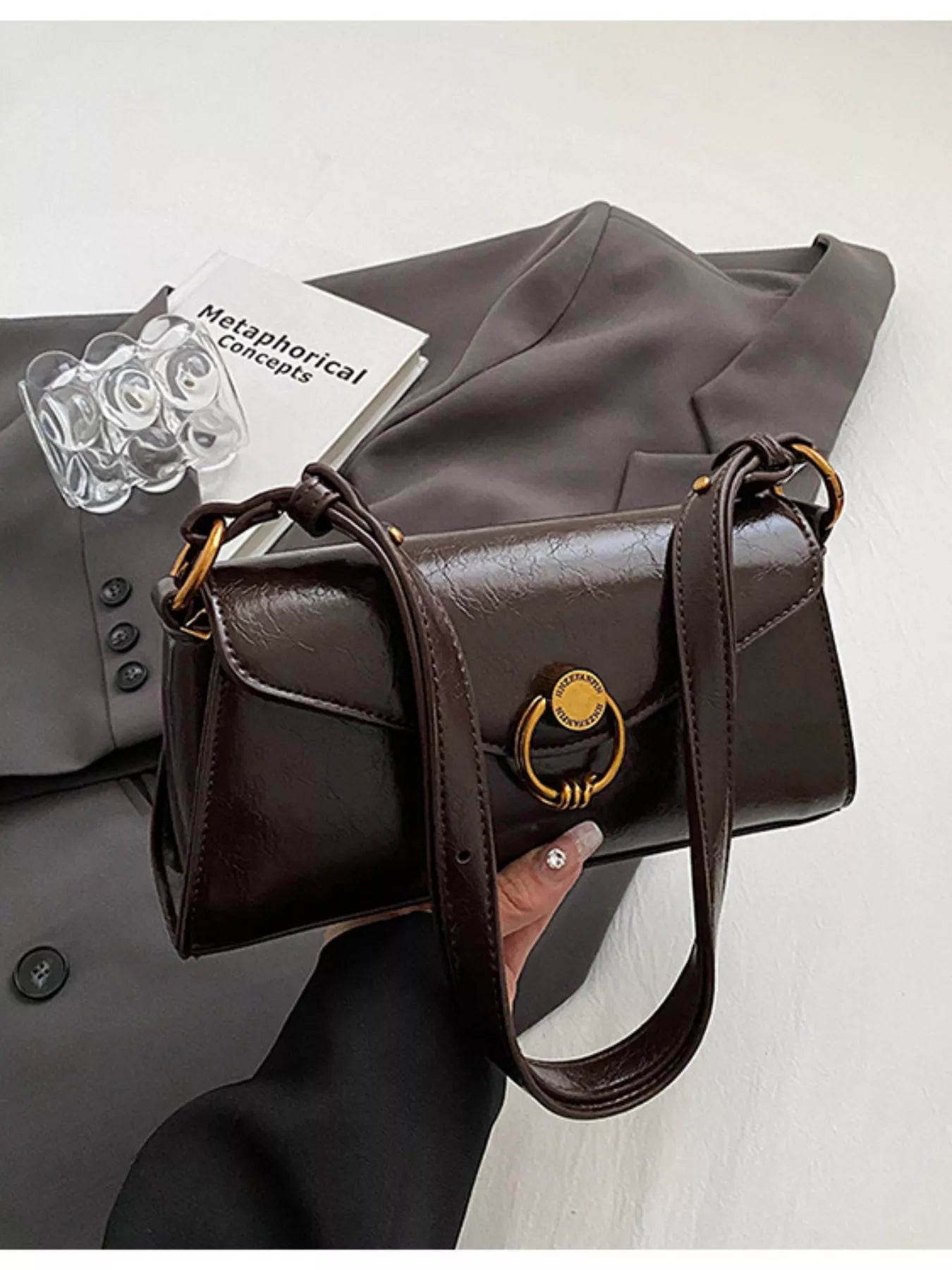 Retro Ring Decor Shoulder Bag