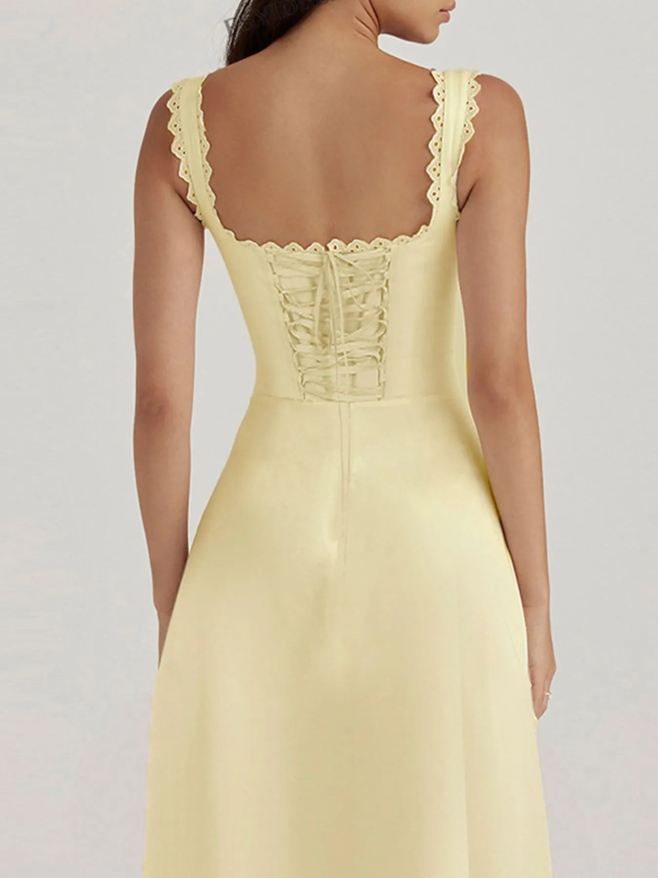 Scalloped V-Neck Midi Dress with Back Lace-Up