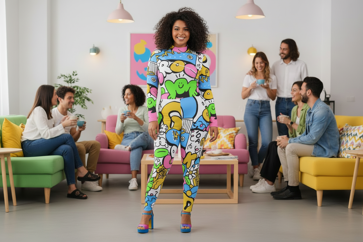 Rock Star-Women's Long-sleeved High-neck Jumpsuit With Zipper