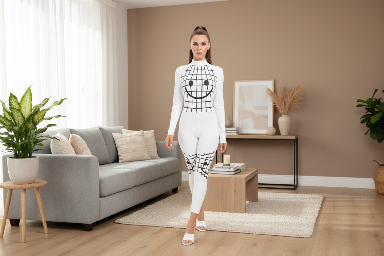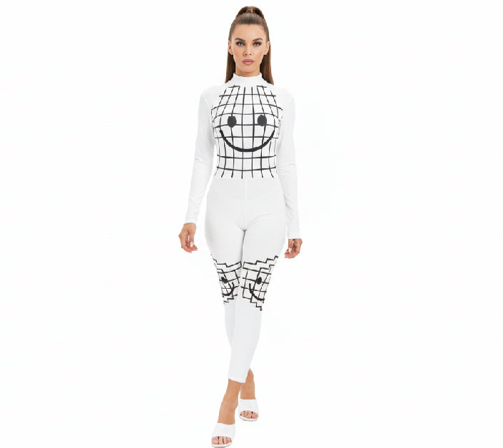 Smiley-Women's Long-sleeved High-neck Jumpsuit With Zipper