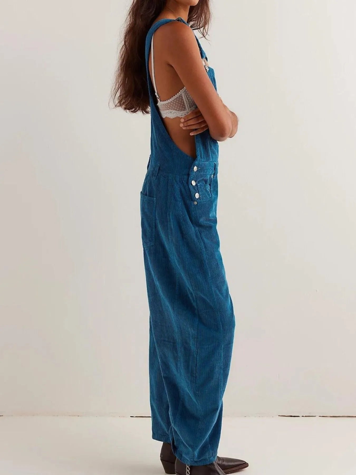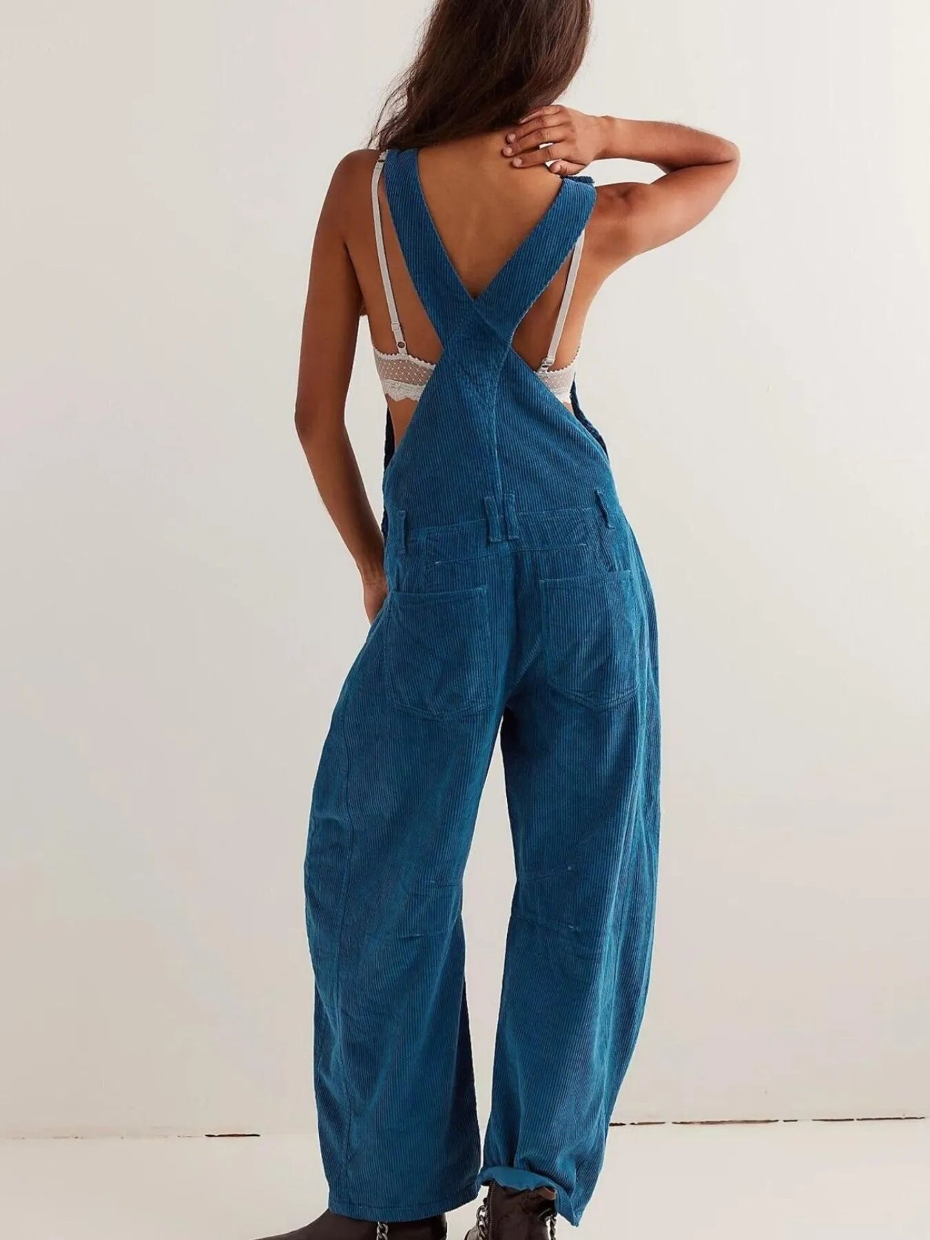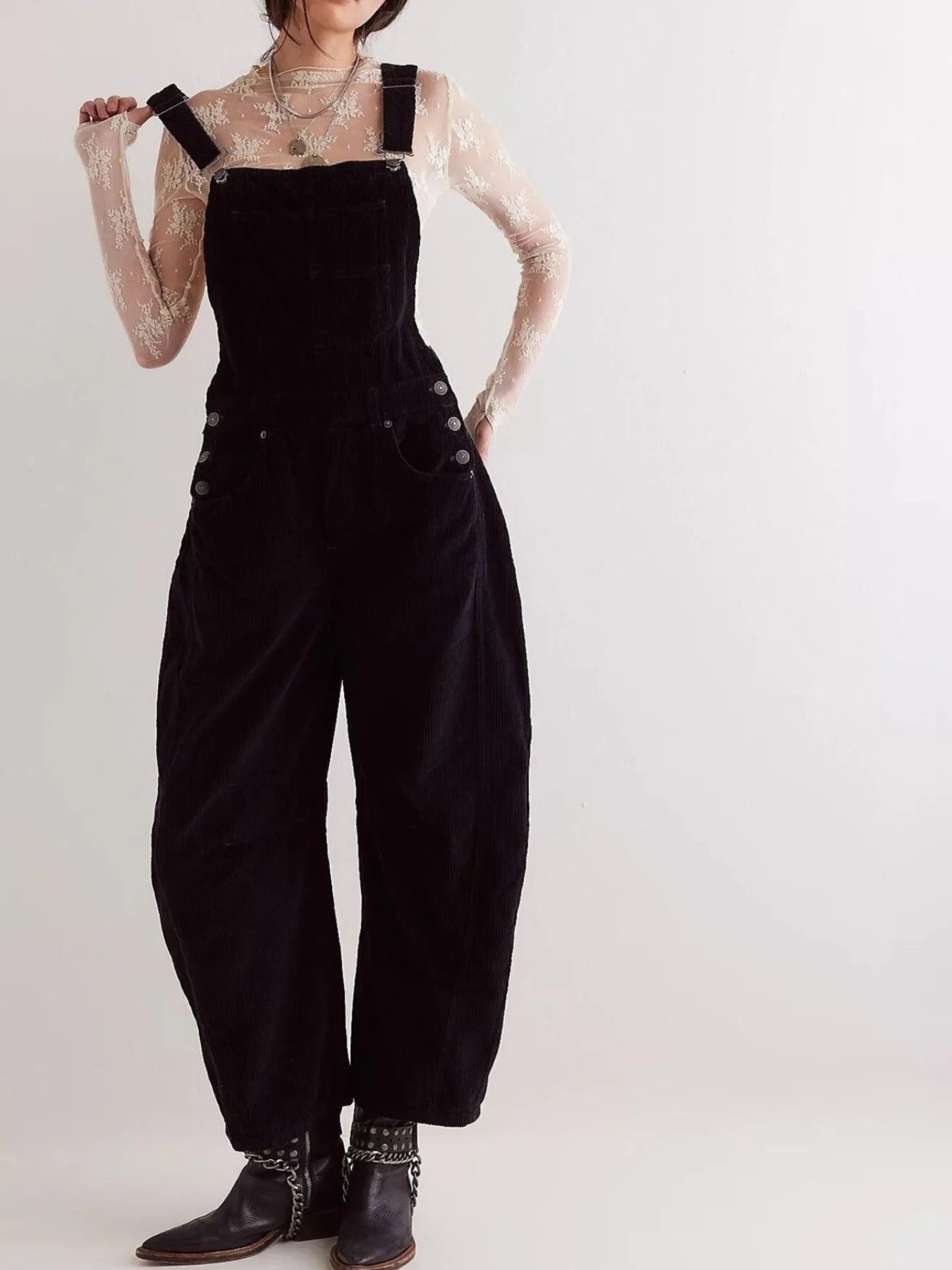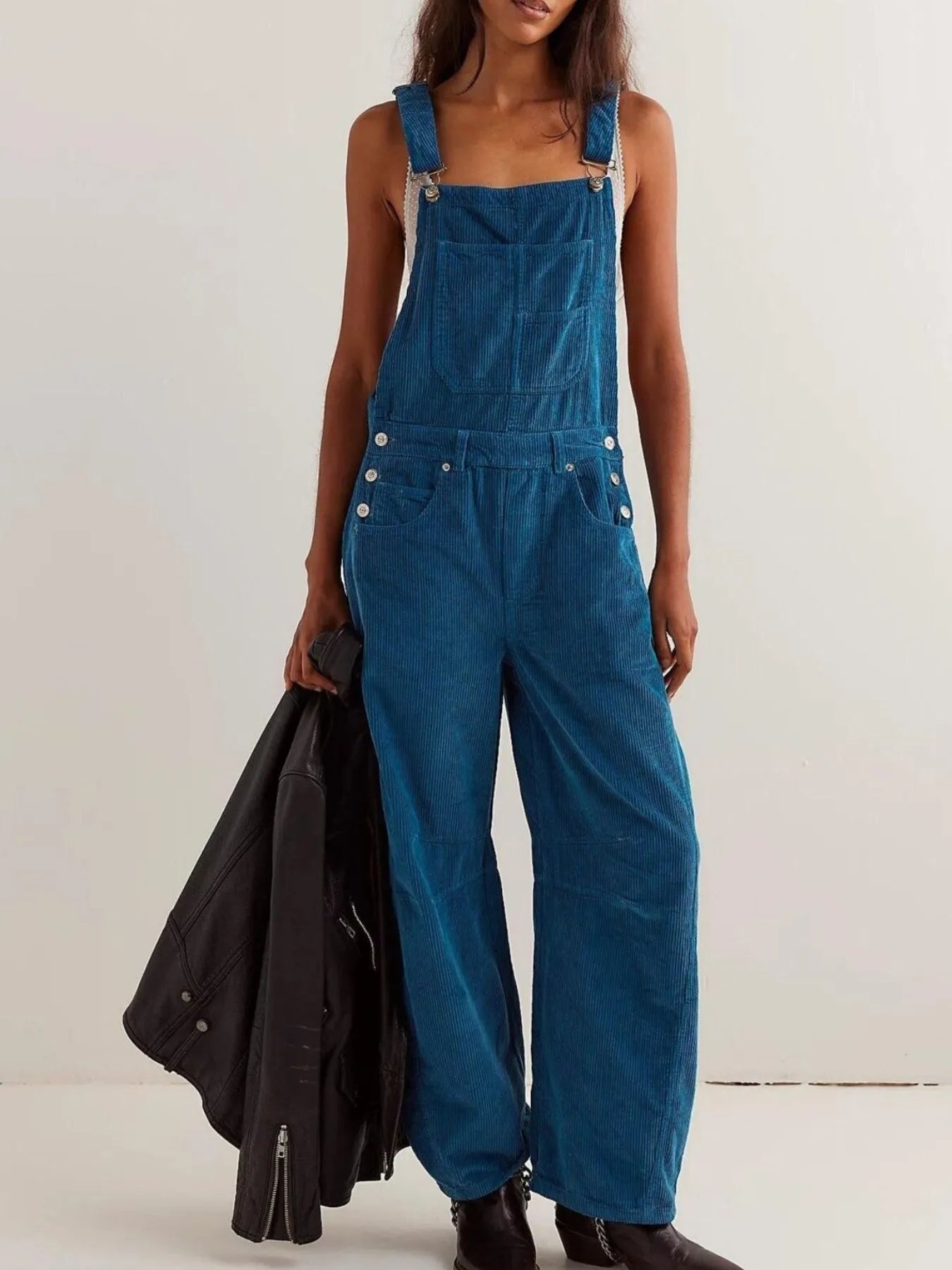 Corduroy Wide-Leg Overall with Adjustable Straps