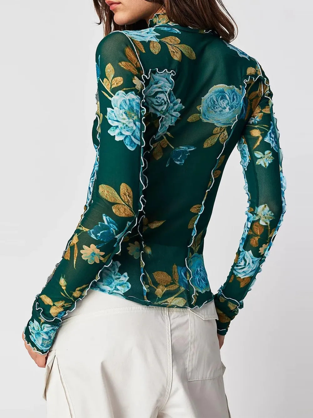 Floral Mock Neck Long Sleeve Top