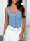 Smocked Square Neck Denim Top