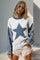 Double Take Full Size Star Pattern Raw Edge Long Sleeve Sweater