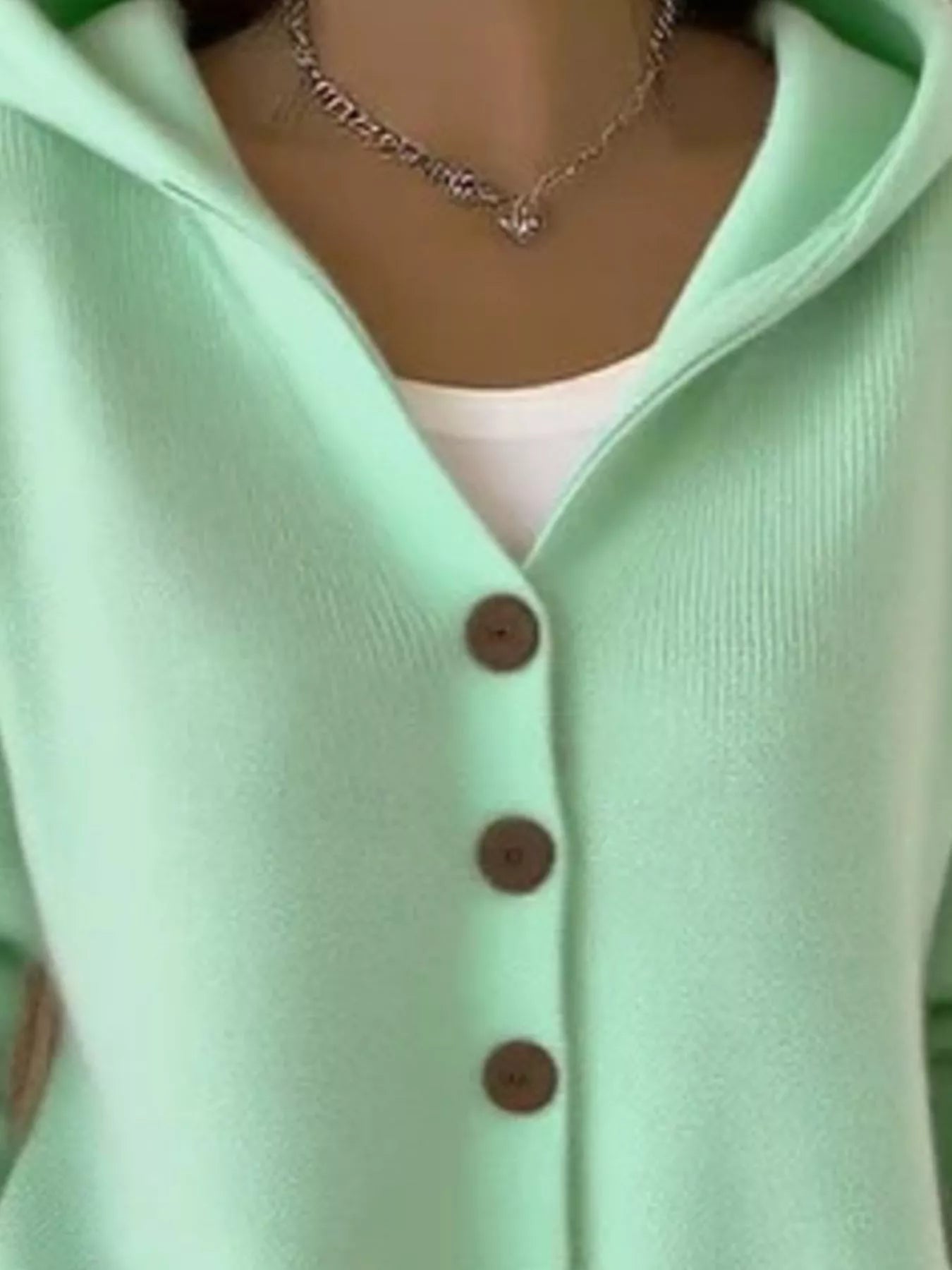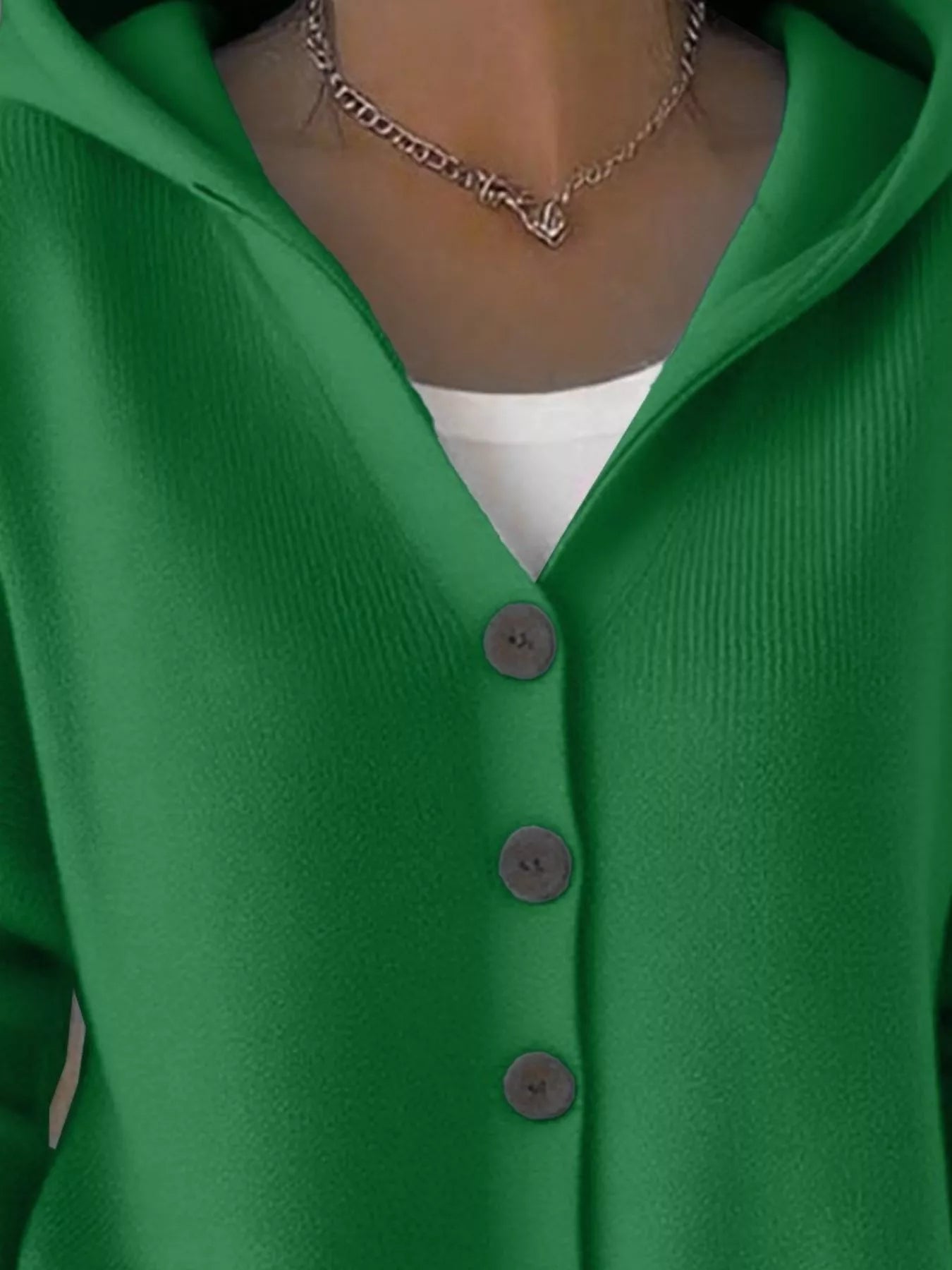 Full Size Hooded Button-Front Soft Knit Cardigan Plus Size