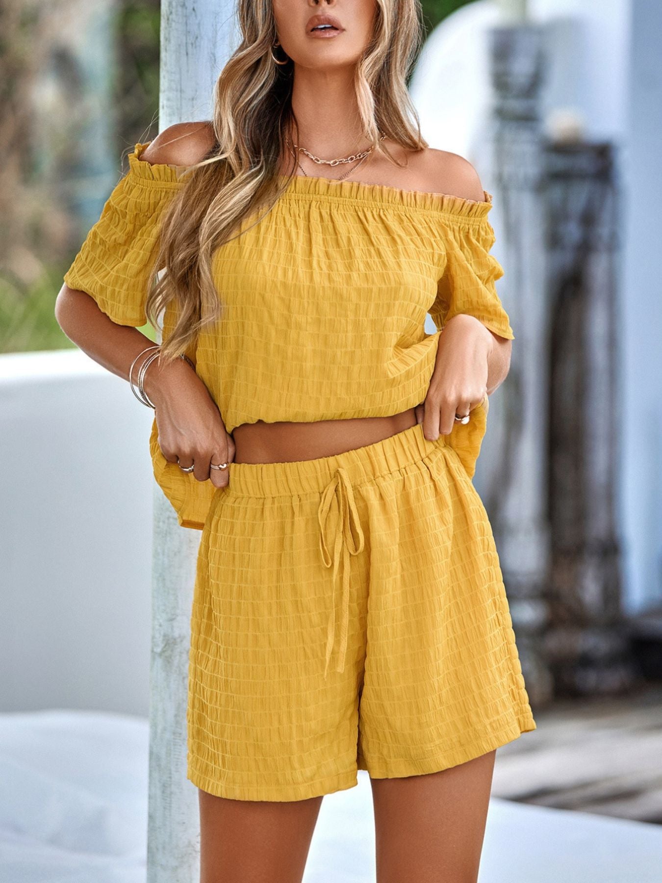 Off-Shoulder Short Sleeve Top and Shorts Set