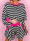 Stripe Contrast Ribbed Banding Long Sleeve Blouse and Loose Shorts Set