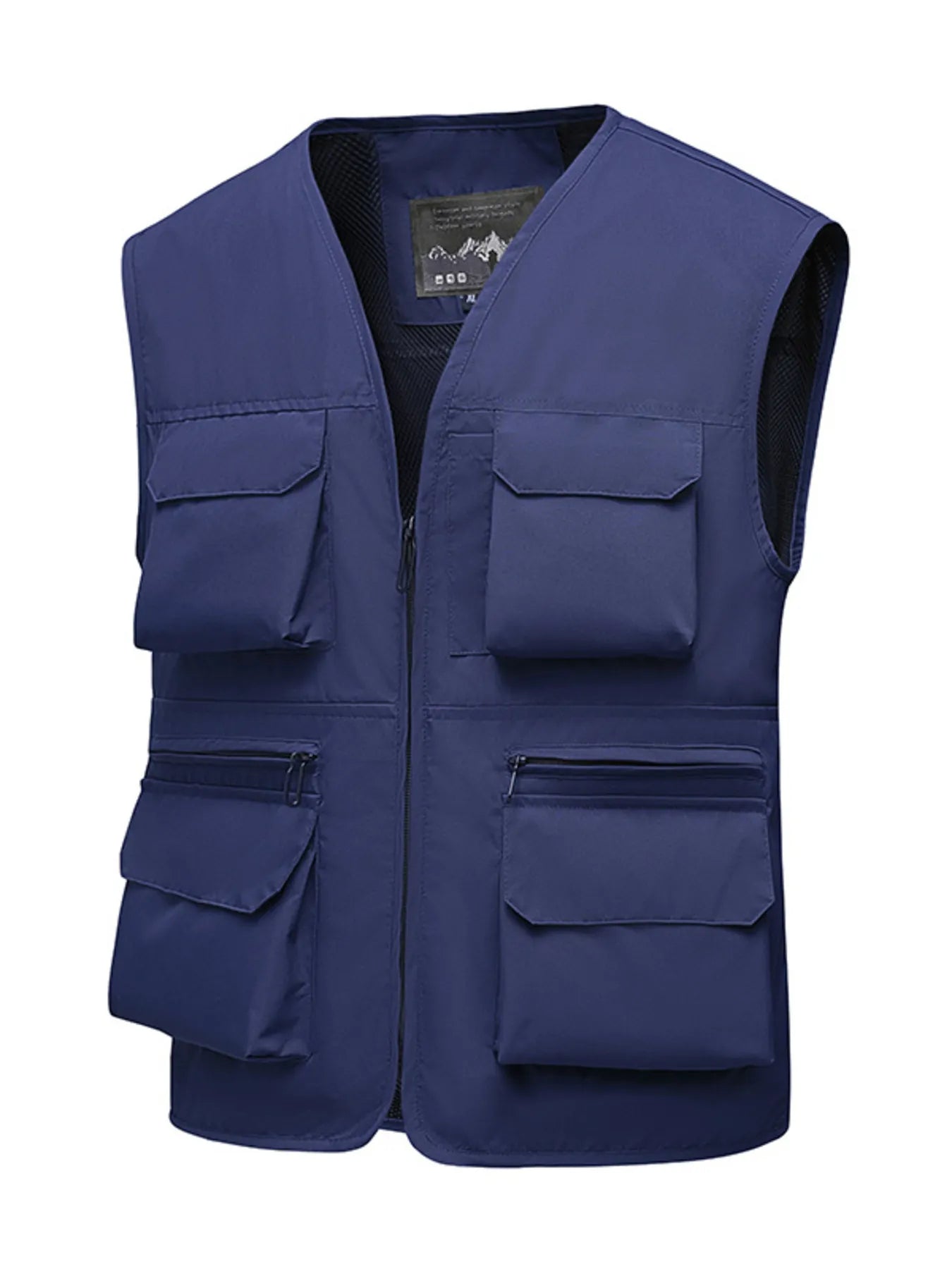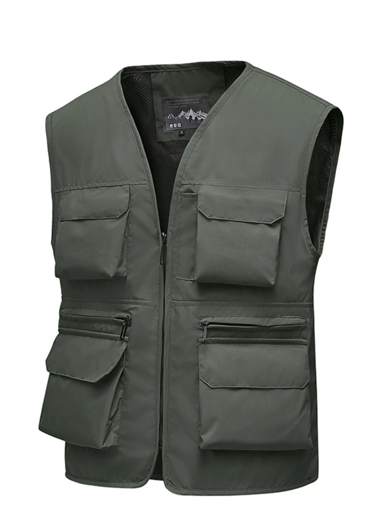 Men's Full Size Multi-Pocket Zip Up Vest Plus Size